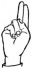 На ћирилици написано ОГЊЕН ТЕОФИЛОВИЋ састоји се из 15 слова [?]. Исписано ћириличном једноручном азбуком за глувонеме: